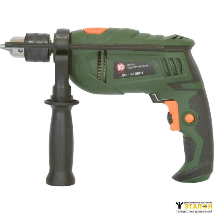 Ручная электрическая ударная дрель (ударная сверлильная машина) Калибр ДЭ-810ЕРУ предназначена для сверления отверстий в цветных и чёрных металлах, пластмассах, дереве, кирпиче, бетоне и других строительных материалах.