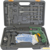 Ручной электрический перфоратор Калибр ЭП-650/24, среднего класса, с возможностью работы в трёх режимах(«сверление»/ «сверление с ударом»/ «удар»), относится к изделиям бытового назначения. Перфоратор предназначен для ударного сверления отверстий в бетоне, кирпиче и камне, а также для лёгких долбёжных работ (скалывание керамической плитки, вырубка ниш, штробление каменных поверхностей и т.п.). Кроме того инструмент можно использовать в режиме сверления отверстий в цветных и чёрных металлах, пластмассах, дереве и других строительных материалах. На перфораторе установлен патрон SDS-plus, в комплект поставки входит:ключевой патрон 1,5-13 мм, посадка 1/2“ 20-UNF и переходник с SDS-plus на сверлильный патрон, дополнительная рукоятка и ограничитель глубины сверления.