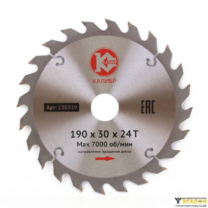 Диск пильный "Калибр" 190х30х24z (арт.130319) предназначен для распила изделий из древесины с помощью циркулярной пилы.