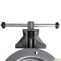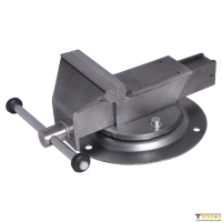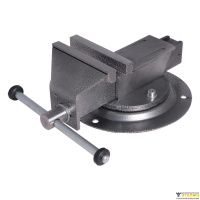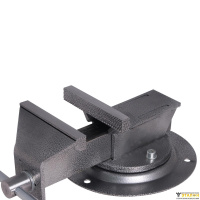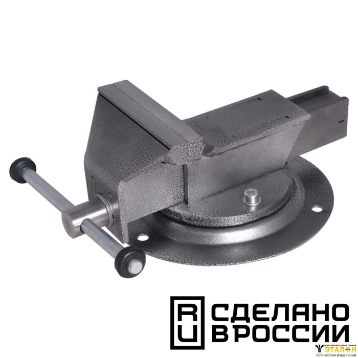 Массивный корпус из стального сплава и основание покрыты краской, защищающей тиски от коррозии, что увеличивает их рабочий ресурс. Зажимные губки выполнены из закалённой стали высокого качества. Корпус, с возможностью поворота на 360 градусов относительно основания, способствует удобной обработке заготовки. Предусмотрено крепление основания к верстаку (рабочему столу) тремя болтами.