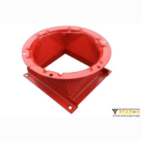Ковши L-110 мм крепятся к ленте с определенным с помощью норийных болтов, на шляпке которых есть шипи, которые врезаются в ленту и предотвращают прокручивание.Вокруг отверстий для крепления на ковшах есть углубления посадочные места для шляпок болтов.