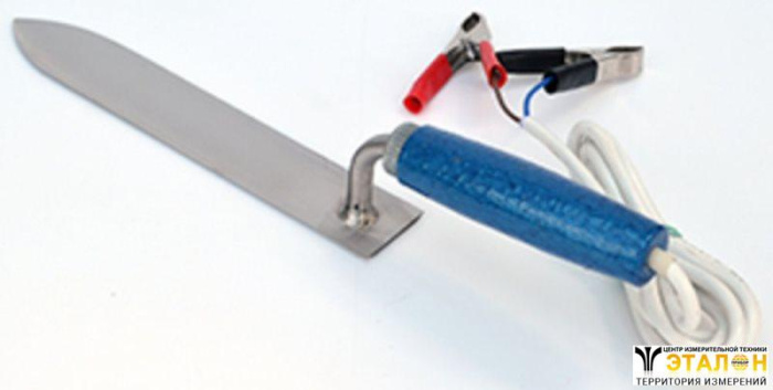 Состоит из лезвия с вмонтрированным термоэлементом, деревянной ручки и проводов с зажимами. Ток питания постоянный, 12 В.