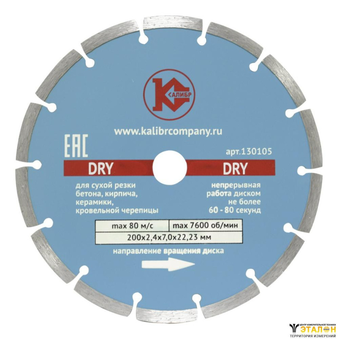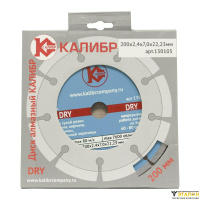 Диск алмазный "Калибр-Dry" 200х22мм (арт.130105) предназначен для машин шлифовальных угловых.
