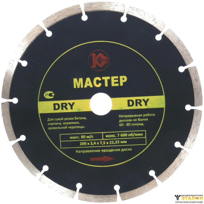 Диск алмазный "Калибр-Dry" 200х22мм (арт.130105) предназначен для машин шлифовальных угловых.
