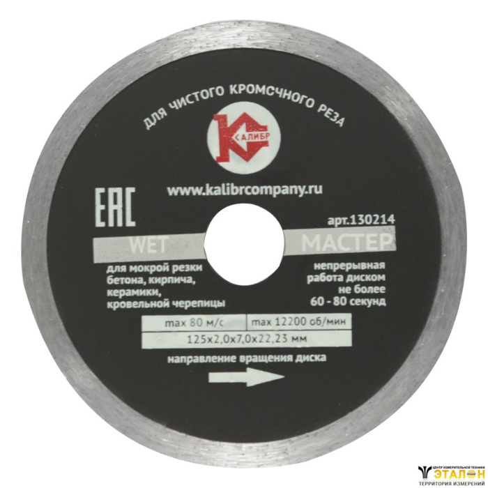 Диск алмазный "Калибр-Мастер Wet" 125х22мм (арт.130214) предназначен для машин шлифовальных угловых, камнерезных станков и ручных резчиков.