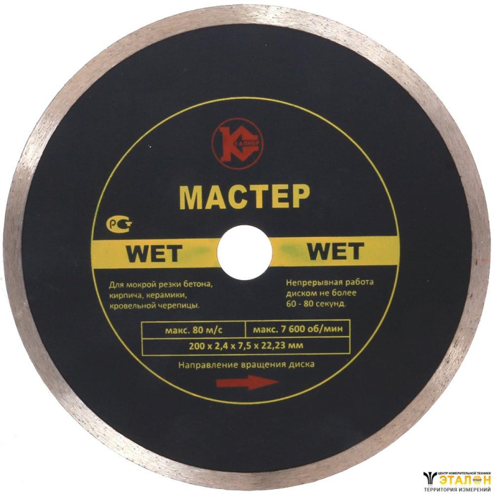 Диск алмазный "Калибр-Мастер Wet" 200х22мм (арт.130217) предназначен для машин шлифовальных угловых, камнерезных станков и ручных резчиков.