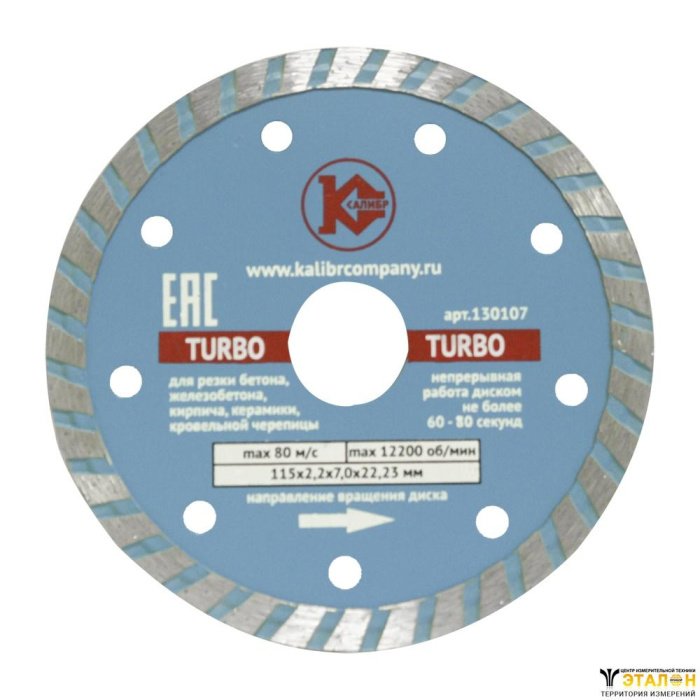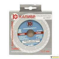 Диск алмазный "Калибр-TURBO" 115х22мм (арт.130107) предназначен для машин шлифовальных угловых.