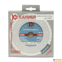 Диск алмазный "Калибр-TURBO" 150х22мм (арт.130109) предназначен для машин шлифовальных угловых.