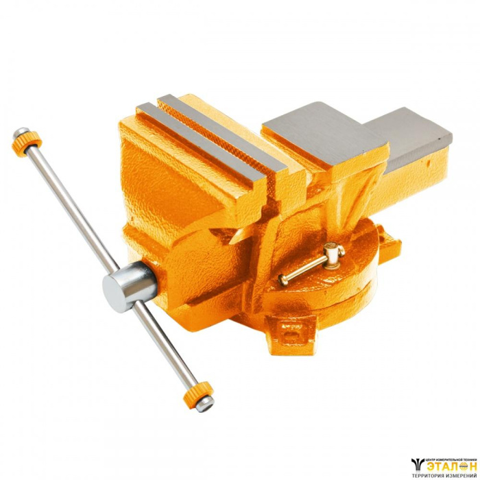 Массивный чугунный корпус и основание покрыты краской, защищающей тиски от коррозии, что увеличивает их рабочий ресурс. Сменные зажимные губки выполнены из закалённой стали высокого качества. Корпус, с возможностью поворота на 360° относительно основания, способствует удобной обработке заготовки. Наличие наковальни расширяет функциональные возможности слесарных тисков. Предусмотрено крепление основания к верстаку (рабочему столу) 3-я болтами.