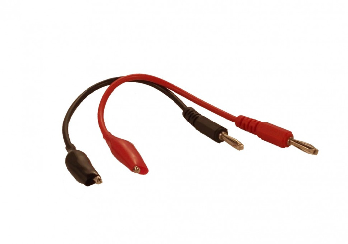 Комплект состоит из красного и черного проводов, с изоляцией из ПВХ, с одной стороны зажимы типа "Крокодил", с другой - однополюсные штепсели (типа "банан").