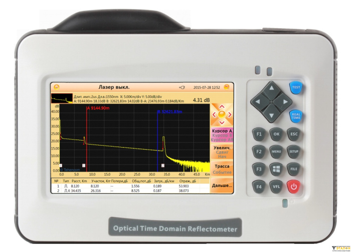 Grandway FHO3000-SP30F-VFL-PM - оптический рефлектометр, предназначен для тестирования активного оптоволокна, с рабочей длиной волны 1625 нм (встроенный фильтр) и дальнейшим отображением неоднородностей на рефлектограмме, что позволит обнаружить и идентифицировать проблемные участки активной оптической линии с динамическим диапазоном 30 дБ. .