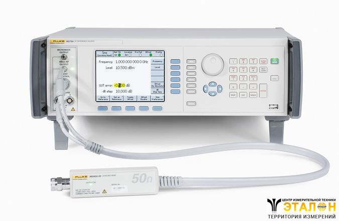 Опорный источник Fluke 96270A/HF включает высокочастотный регулировочный комплект, который состоит из датчика мощности Rohde & Schwarz 40 ГГц и сплиттера Agilent 11667B, а также СВЧ-кабеля метрологического класса и прецизионного адаптера APC-3,5 мм. Такая конфигурация, задействующая СВЧ-выход Fluke 96270A, позволяет откалибровать анализаторы спектра, датчики мощности и высокочастотные осциллографы с полосой пропускания в диапазоне от 1 кГц до 27 ГГц. Датчик мощности и сплиттер обеспечивают Fluke 96270A полностью автоматической обратной связью, что позволяет создать точный, равномерный сигнал высокой чистоты, идентичный установкам на передней панели Fluke 96270A, в опорной плоскости на выходе сплиттера и входном разъеме тестируемого устройства.