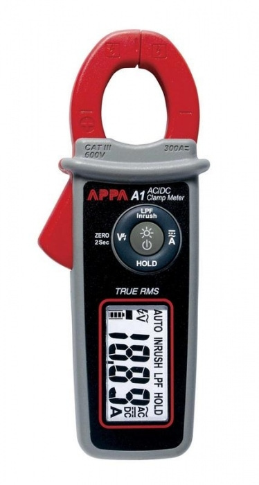 Клещи электроизмерительные (измерение сигналов произвольной формы TRMS): диапазон изм. I пер. 60А..300 А (50...400 Гц), пусковой ток (INRUSH), диапазон изм. I пост. 60...300 А, погрешность ± 1,5 % (базовая), максимальное разрешение 0,01 А, 2 изм./ с, бесконтактный индикатор напряжения (VoltSense), фильтр НЧ (LPF), удержание параметров, 4 разряда (6000), подсветка дисплея, макс.диаметр пров. 25 мм, установка «0» показаний (DCA), питание 1,5 В х 2 (тип LR44), автовыключение питания, противоударные (1,4 м), 147 х 60 х 31 мм, масса 140 г.