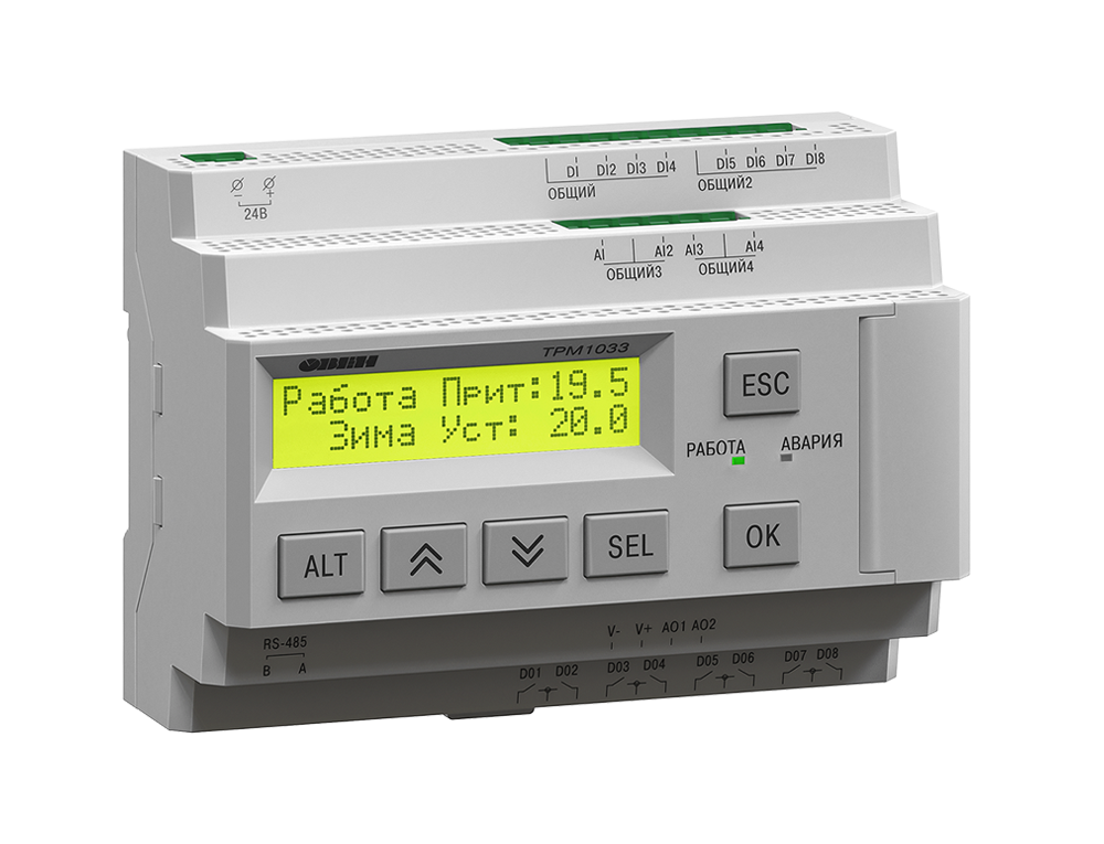 ТРМ1033 – это специализированный контроллер с готовыми алгоритмами для автоматизации приточной вентиляции. Контроллер позволяет управлять стандартными узлами вентиляции для достижения максимально комфортной температуры приточного воздуха для помещений: