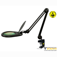 Лампа-лупа (бестеневой светильник с линзой) 8066LED-A ESD 5D в антистатическом исполнении современного дизайна облегченной конструкции, крепление к рабочей поверхности – струбцина.
