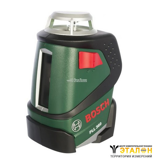 Лазерный уровень Bosch PLL 360 проецирует вертикальную и горизонтальную линии на 360°, что удобно при работе в помещении. Резиновые накладки на корпусе защищают прибор от ударов.