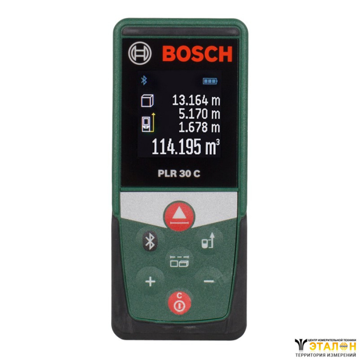 Рабочий диапазон составляет от 0,5 до 30 м при точности ±2 мм — дальномер Bosch PLR 30 C способен полностью заменить обычную рулетку как при мелких бытовых измерениях, так и при проведении ремонтных и строительных работ.