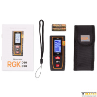 Диапазон измерений лазерного дальномера RGK D30 (с поверкой) – 30 метров, точность при этом составляет ± 2 мм. Получить точные данные даже при ярком свете поможет яркий лазерный луч прибора.