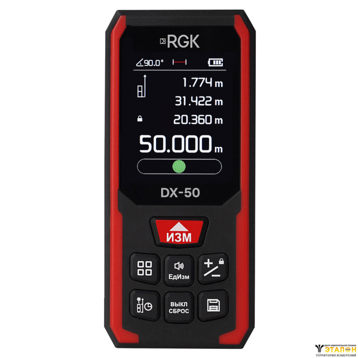 Лазерный дальномер RGK DX-50 представляет собой портативный комбинированный инструмент, поддерживающий 10 рабочих режимов, который может применяться для измерения расстояний и разметочных работ в диапазоне до 50 м, расчета площадей, объемов и недоступных размеров, а также для выравнивания и определения уклонов. По сравнению с рулетками семейства RGK DL, которые также оборудуются внутренним инклинометром, данное изделие обладает расширенной функциональностью и улучшенной наглядностью – за счет использования графического дисплея.