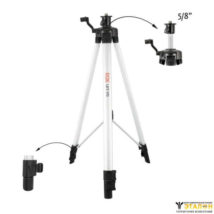 Штатив RGK LET-170 служит для установки лазерных нивелиров и и другого оборудования в диапазоне высот от 0,67 до 1,7 м.