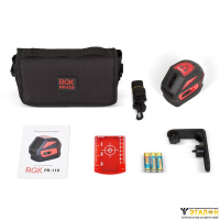 Доступный и функциональный лазерный построитель плоскостей RGK PR-110 – отличный выбор при проведении ремонта в небольших помещениях, будь то квартира или офис. Прибор проецирует на поверхности две взаимно перпендикулярных плоскости, как вместе, так и по отдельности, с развёрткой в 110°. Качественная лазерная система II класса создаёт чётко видимые линии на дистанции до 10 м, чего вполне достаточно для большинства помещений, а использование специального приёмника лазерного излучения позволяет увеличить эффективную дальность до 50 м.