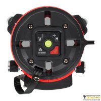 Плавная регулировка горизонтального лимба с помощью винта горизонтальной наводки обеспечит точную установку положения вертикальных линий. Регулируемые металлические ножки и пузырьковый уровень помогут установить лазерный уровень RGK LP-72 на неровной поверхности.