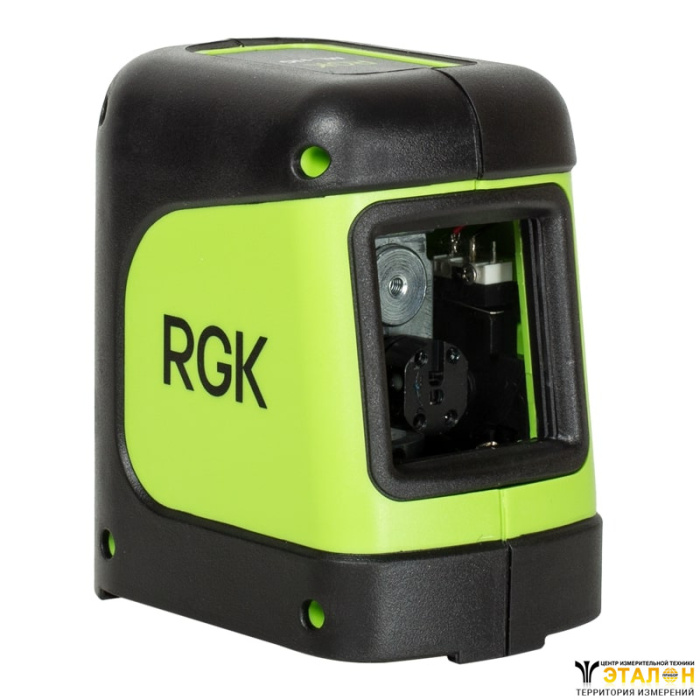 На корпусе расположено крепление с резьбой 1/4". Благодаря этому, лазерный уровень RGK ML-11G легко устанавливается на специальную подставку или штатив. Также, с помощью крепления, вы можете установить прибор на штангу-упор или кронштейн.