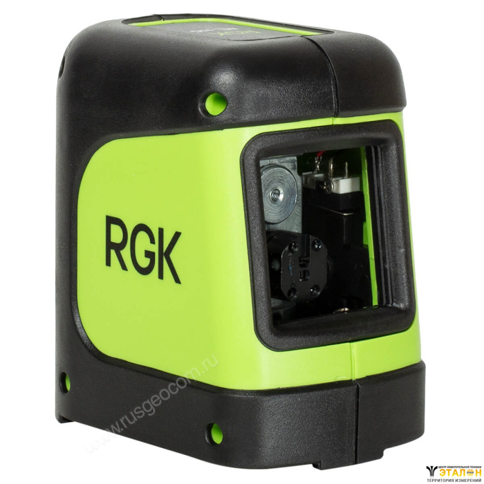На корпусе расположено крепление с резьбой 1/4". Благодаря этому, лазерный уровень RGK ML-11G легко устанавливается на специальную подставку или штатив. Также, с помощью крепления, вы можете установить прибор на штангу-упор или кронштейн.