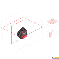 При включении лазерного нивелира RGK PR-81 автоматически срабатывает магнитный компенсатор и проецируются обе плоскости: горизонтальная и вертикальная. Для удобства работы или для экономии заряда аккумулятора ненужную проекцию можно отключить простым нажатием кнопки на верхней панели прибора. Отключив компенсатор, вы сможете работать с наклонными плоскостями. Такой функционал может пригодиться, например, при укладке ромбовидной плитки.
