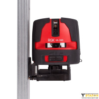 Для удобства нанесения разметки лазерный нивелир RGK UL-360 можно установить на штатив, для чего в нижней части устройства предусмотрена резьба 1/4”. Поставляемое в комплекте магнитное крепление даёт возможность закрепить нивелир на металлической поверхности на любой высоте, в углу комнаты или в другом недоступном месте. Проработанная конструкция корпуса и тщательно подобранные материалы обеспечивают надёжную защиту устройства нивелира от негативных факторов. Бесперебойное функционирование RGK UL-360 гарантировано в диапазоне от -5°C до +45°C, что позволяет работать с ним практически в любых помещениях.