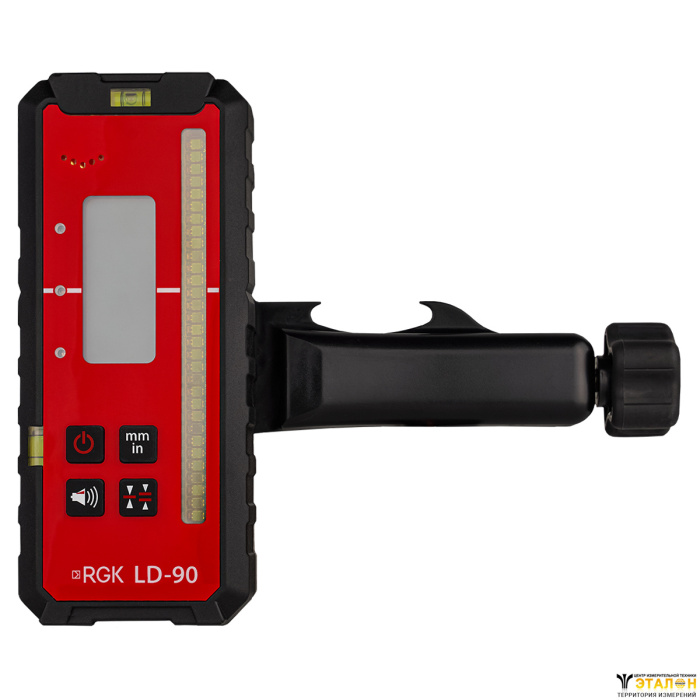 Приёмник излучения RGK LD-90 позволяет расширить радиус действия лазерных нивелиров до 300 м, обеспечивая выявление лазерной плоскости и определение ее точного положения на дистанциях, когда маркер от проецирующего прибора визуально неразличим. Изделие представляет собой цифровой инструмент с батарейным питанием, снабженный сенсором шириной 130 мм и органами индикации и управления, который может устанавливаться на нивелирную рейку с помощью комплектного держателя.