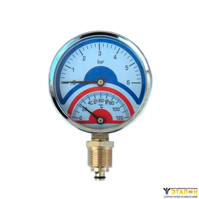 Термоманометр 6 bar/120C радиальный (индикатор давления и температуры) предназначен для наблюдения за тенденциями изменения давления и температуры воды и воздуха.