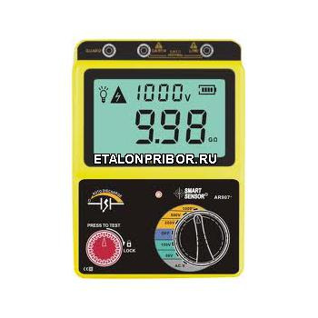 Тестер изоляции AR907+ может измерять сопротивление изоляции в диапазоне от 0 Ом до 20 ГОм. Тестер сопротивления изоляции AR907+ позволяет производить измерение напряжением от 50В до 1000В, которое разбито на 5 фиксированных режимов. Помимо сопротивления, электрический тестер AR907+ позволяет измерять напряжение электрической цепи. Тестер изоляции AR907+ при измерении выводит показания на ЖК-дисплей, оснащенный подсветкой.