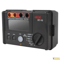 Электронный мегаомметр RGK RT-10 поставляется готовым к работе, батарейки и провода включены в набор. Хранить и перевозить устройство можно в специальном чехле, а на объекте его защитит прочная крышка. Удобный ремень для перевозки крепится прямо к корпусу и освобождает руки оператора. В зависимости от задачи проводить тестирование можно как с измерительными щупами, так и с зажимами типа крокодил.
