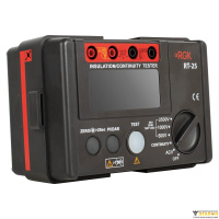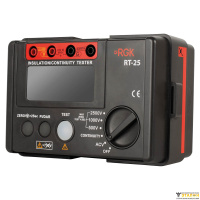 Электронный мегаомметр RGK RT-25 с поверкой защищен от скачков напряжения по классу CAT III 600В и может применяться для замеров на коммутационном оборудовании, распределительных щитах, фидерах и трехфазных сетях.