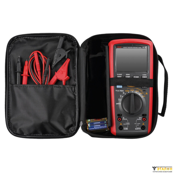 В набор мегаомметра RGK RT-30 входит все необходимое для начала работы - провода, щупы, зажимы. Для безопасной транспортировки и хранения комплекта предусмотрен прочный чехол.