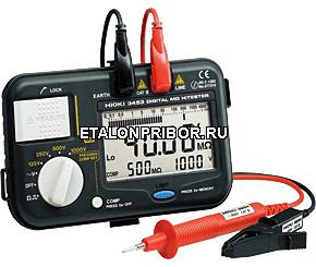 Hioki 3453 Аналоговый мегаомметр для измерения сопротивления изоляции. Прибор объединяет 4 диапазона: 125 В / 40 MОм, 250 В / 2000 MОм, 500 В / 2000 MОм, и 1000 В / 4000 MОм.Большой цифровой экран. Запоминает до 20 результатов обработки Распознает различные виды сопротивлений Способен измерять АС напряжение и небольшое сопротивление (электропроводность). Автоматическое изображение измеряемого значения в течение 1 минуты после начала измерения.