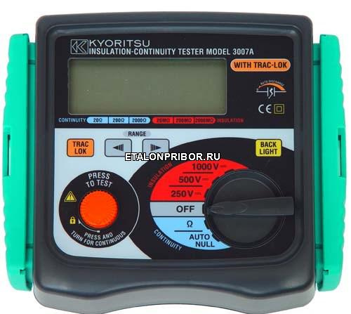 KEW3007A мегаомметр предназначен для измерения сопротивления изоляции электрических цепей, не находящихся под напряжением. Он применяется для измерения сопротивления изоляции электрических проводов, кабелей, разъёмов, трансформаторов, обмоток электрических машин и других устройств, а также для измерения поверхностных и объемных сопротивлений изоляционных материалов. Питание прибора осуществляется от встроенного электромеханического генератора.