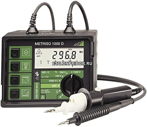 METRISO 1000D - Измеритель сопротивления изоляции предназначен для измерения сопротивления изоляции электрических цепей, не находящихся под напряжением. Он применяется для измерения сопротивления изоляции электрических проводов, кабелей, разъёмов, трансформаторов, обмоток электрических машин и других устройств, а также для измерения поверхностных и объемных сопротивлений изоляционных материалов. Питание прибора осуществляется от встроенного электромеханического генератора.