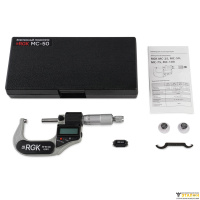Электронный микрометр RGK MC-50 – высокоточный измерительный инструмент с рабочим диапазоном от 25 до 50 мм, в котором предусмотрена возможность считывания результатов с дисплея или снятия отсчетов по шкалам барабана и стебля, как у традиционного механического устройства.