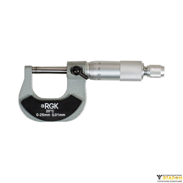Механический микрометр RGK MCM-25 оборудован стопорным зажимом, который упрощает снятие показаний и составление документации. Барабан и трещотка, используемая для создания оптимального контакта с объектом измерения, снабжены рельефной насечкой, за счет которой этими органами управления удобно пользоваться. Обе шкалы, расположенные на стебле и барабане, отличаются долговечностью и износостойкостью.