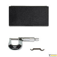 В набор входит регулировочный ключ для настройки и выставления нуля. Для хранения и безопасной транспортировки комплекта предусмотрен прочный защитный футляр с ложементом, надежно удерживающим микрометр RGK MCM-25.