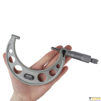Микрометр RGK MPM-100 представляет собой ручной измерительный инструмент точного класса с рабочим диапазоном от 75 до 100 мм, который соответствует типу МК по ГОСТ 6507. Основным его отличием от модели MCM-100, обладающей таким же разрешением и пределами измерений, является конструкция скобы. Ее дугообразная форма оптимизирована для контроля размеров изделий круглого сечения, а за счет сквозных отверстий снижен общий вес инструмента и минимизировано влияние теплового расширения материала на точность получаемых результатов.