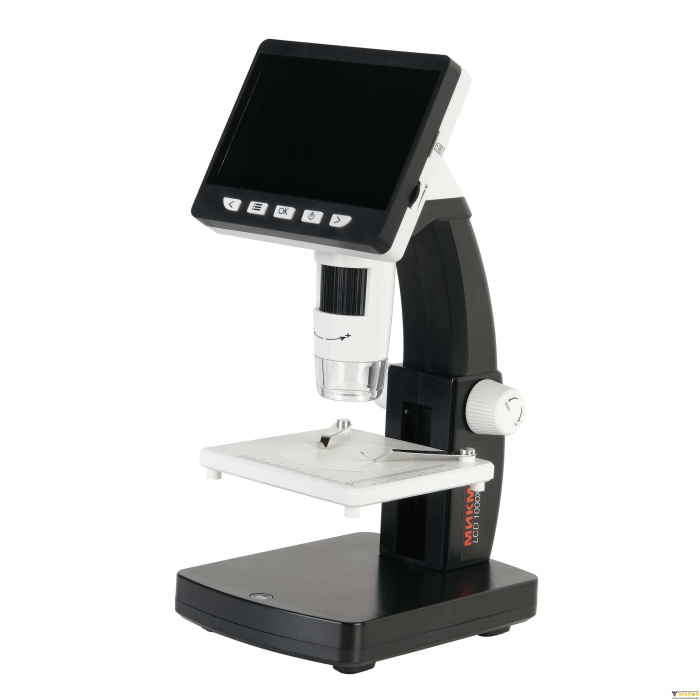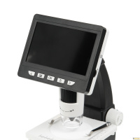 Цифровой микроскоп для исследований в отраженном свете с просмотром изображений на LED мониторе 4.3” и выводом их на РС. Увеличение 50х – 1000х. Светодиодный осветитель. Питание от встроенного аккумулятора и через порт USB.