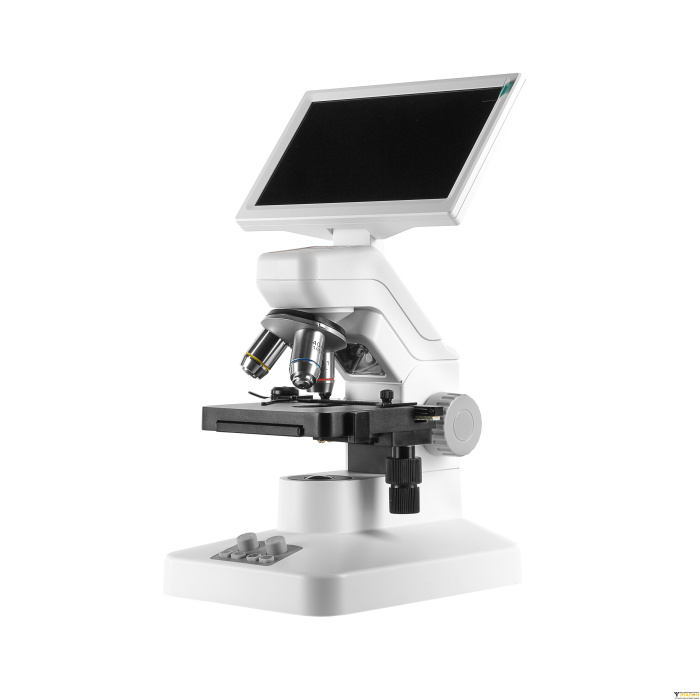 Встроенная 3Мр камеры и IPS монитора 7” позволяют в режиме реального времени и без чрезмерного напряжения глаз наблюдать изображение на мониторе микроскопа без подключения к ПК. Жидкокристаллическая матрица c технологией IPS позволяет наблюдать отчетливое изображение с углами обзора до 170⁰ без затемнения, это позволяет проводить с комфортом групповые занятия.