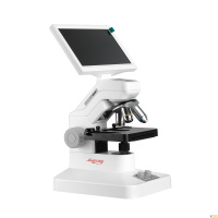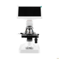 Микроскоп состоит из оптической головки с объективами на револьверном устройстве, светодиодными осветителями проходящего и отраженного света, механизмом фокусировки и LED монитором 7”. На штативе микроскопа установлен механический предметный столик.