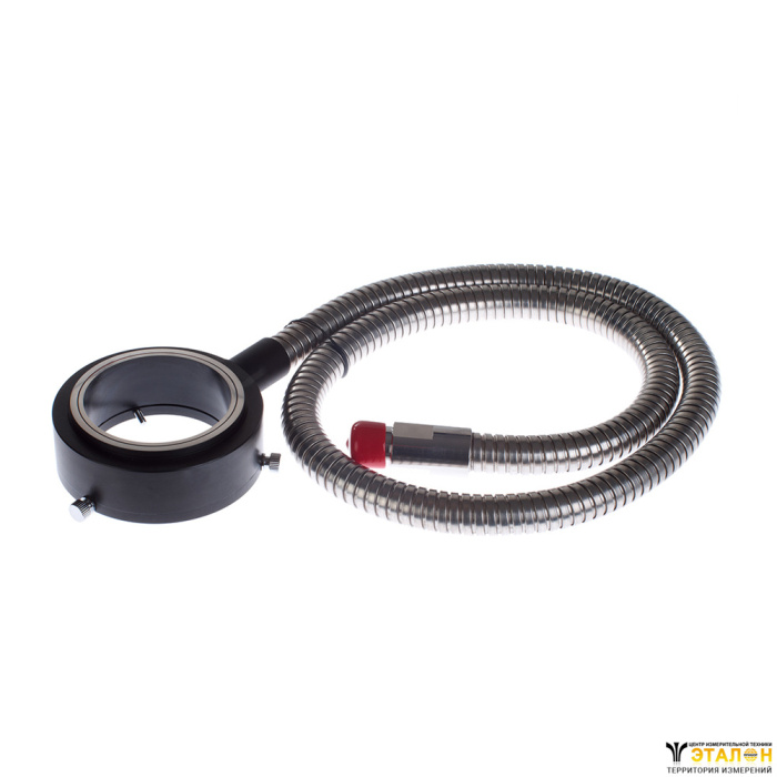Верхнее бестеневое освещение направленное точно по оптической оси микроскопа способствует равномерному освещению без глубоких теней, приводящим к получению ложных результатов исследований. Благодаря кольцевой конфигурации осветителя изображение свободно от асимметричных теней, искажающих геометрию объекта. Оптоволоконный жгут длиной 900 мм помещен в эластичный металлический рукав, благодаря этому осветительный блок может быть размещен в любом удобном месте рабочего пространства.