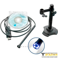 Цифровой микроскоп МЕГЕОН 33001 представляет собой микроскоп с подключением по USB – кабелю к компьютеру или портативным устройствам. Цифровой микроскоп серии МЕГЕОН 33001 предназначен для визуального осмотра и анализа самых малых объектов без их повреждения. Микроскоп способен работать в том числе в неосвещенных или слабоосвещенных местах. Это достигается за счет шести светодиодов с регулируемой интенсивностью свечения. Длина USB провода составляет 1м. Диаметр корпуса микроскопа всего 7,8 мм, на конце зонда располагается видеокамера высокой четкости диаметром 7 мм с регулируемым увеличением до 700х. Изображение исследуемого объекта выводится на монитор компьютера или при помощи OTG кабеля на дисплей вашего мобильного устройства. Полученное изображение может быть сохранено в виде видеозаписи или фотографий.