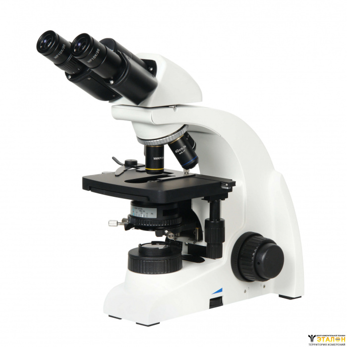 Предназначен для исследований в проходящем свете по методу светлого поля. Бинокулярная визуальная насадка. Оптическая схема «бесконечность». Осветительная система Кёлера. Увеличение микроскопа в базовой комплектации 40х-1000х, с дополнительными окулярами 40х-2000х. Револьверное устройство на 4 объектива.