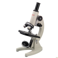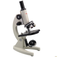 Монокулярный микроскоп. 3х позиционный револьвер объективов. В комплекте 3 ахроматических объектива и два окуляра. Освещение - зеркало с двумя отражающими поверхностями. Грубая и точная фокусировка.